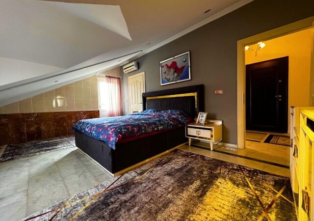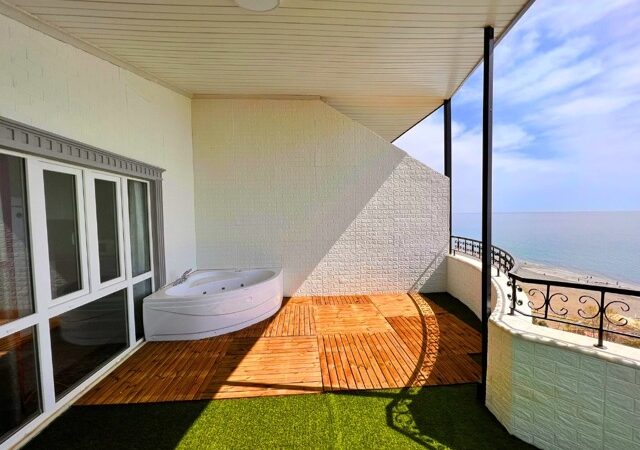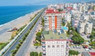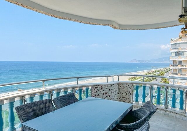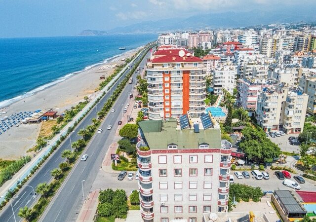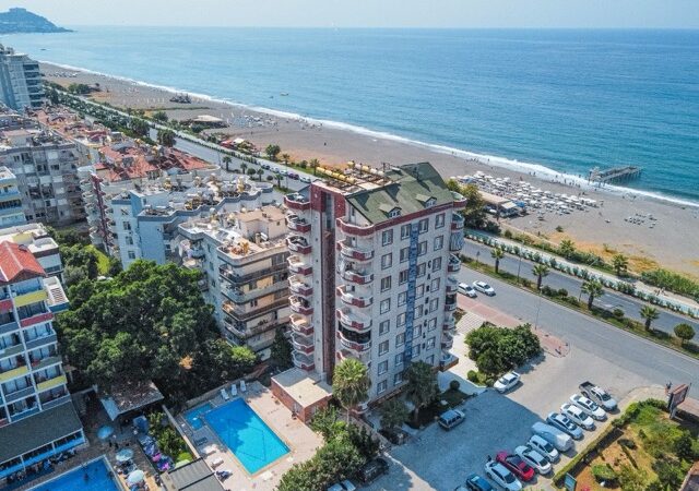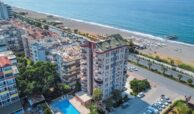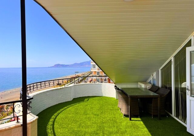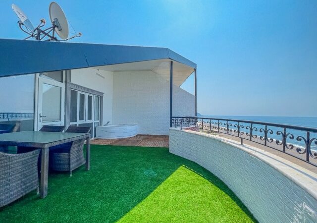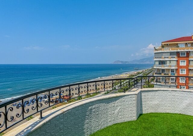 This exquisite 3-bedroom penthouse in the heart of Mahmutlar, Alanya offers a generous living space with 2 living rooms, 4 balconies, and 2 bathrooms, perfectly blending comfort and luxury. Situated on the 9th floor (top floor) of a 14-year-old building, the property boasts a south-facing facade and direct 0 meters proximity to the sea, providing breathtaking panoramic views.