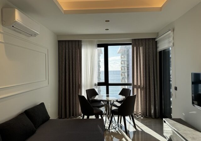 This elegant 1-bedroom apartment, situated on the 9th floor of a prestigious residential complex in Mahmutlar, offers breathtaking sea views and a prime location for a comfortable and stylish lifestyle. Perfectly designed for modern living, this residence combines luxury with convenience.