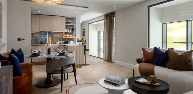Residents enjoy the use of outstanding amenities, including a 24-hour concierge service, a wellness suite with a pool and sauna, a fully equipped gym, private screening rooms, and flexible workspaces. The communal areas are designed to offer both functionality and relaxation, ensuring comfort and convenience at all times. Outside, the development features beautifully landscaped gardens, perfect for unwinding after a busy day.
