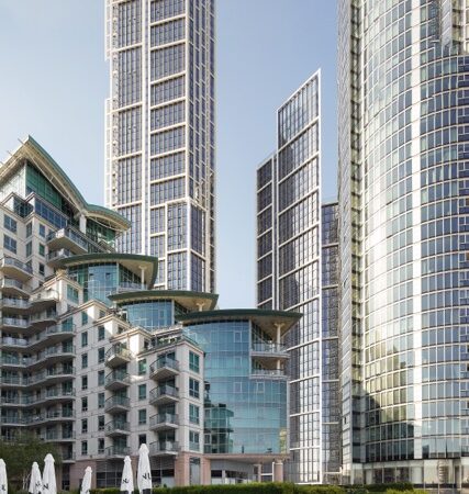 The bathrooms offer a spa-like experience with luxurious marble finishes and mirrored cabinets, perfect for unwinding after a long day. Enjoy an array of world-class amenities, such as a state-of-the-art fitness centre, business lounge, multimedia and business rooms, a play area, and winter gardens. Take in panoramic views from the 56th-floor Sky Terrace, where you can relax and appreciate the beauty of the city.