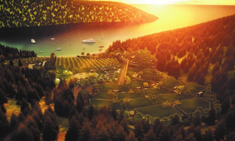 The project, spanning an impressive 32,000 sqm area, offers 19 exclusive villas surrounded by a blend of nature and luxury. On-site facilities include a private beach, boutique hotel, spa, sauna, Turkish bath, gym, restaurant, private parking, and 24/7 security, ensuring a safe and comfortable lifestyle. This exceptional development is strategically located between the sea and forest within a private cove.