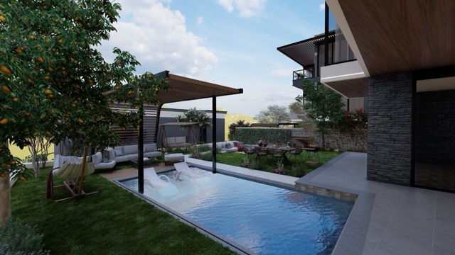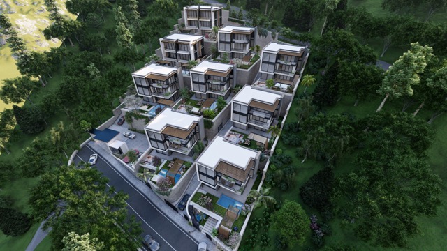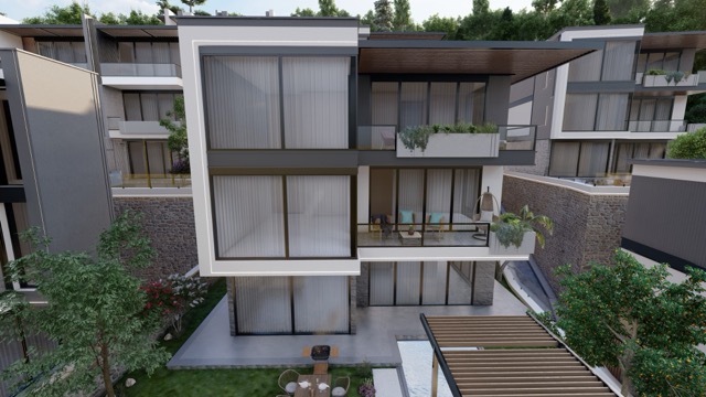 This stunning villa for sale in Bektas, Alanya, offers 385 m² of luxurious living space, set on a 410 m² plot. Scheduled for completion in December 2024, the property boasts four floors of elegant design, featuring 4 bathrooms, a spacious living room, and an American-style kitchen. The villa is available fully furnished at an additional cost, providing a move-in-ready option. Underfloor heating, air conditioning, and a CCTV alert system ensure modern comfort and security throughout the property.