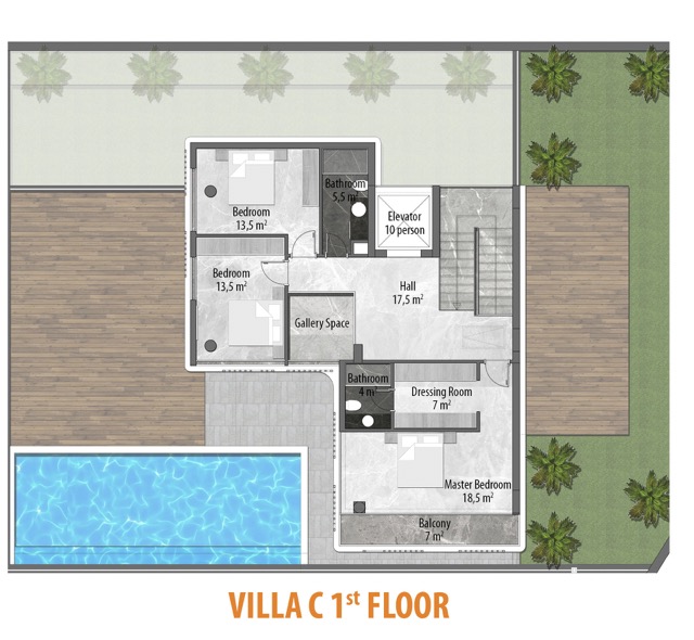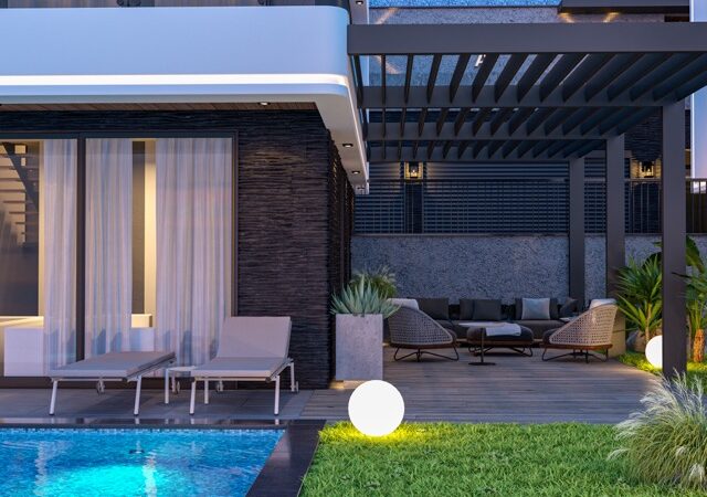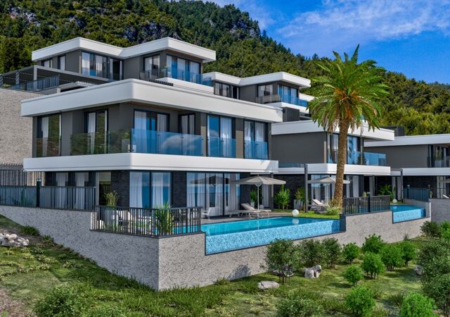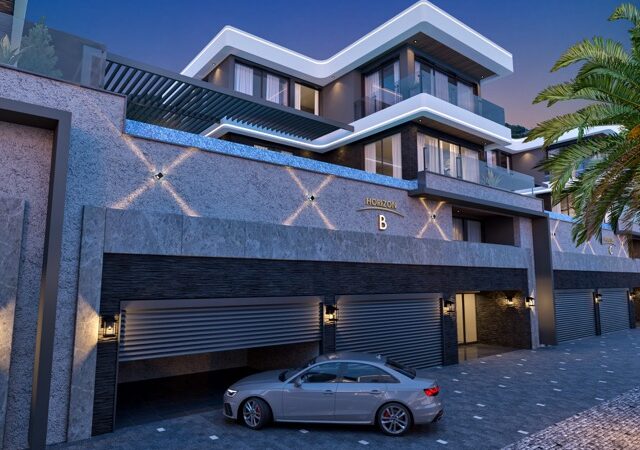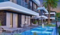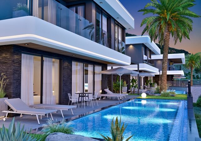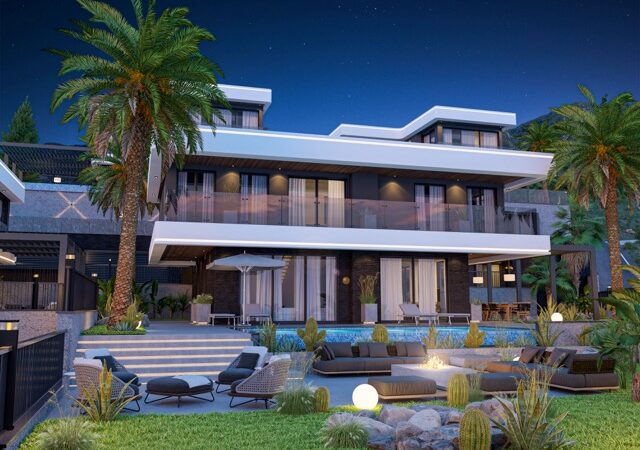 Located just 4 km from the sea and Alanya city center, this villa combines seclusion with easy access to local amenities. The complex offers shared luxury facilities such as an indoor pool, children’s pool, aqua park, spa, fitness center, sports courts (football, basketball, tennis), and more. This villa is eligible for Turkish citizenship, making it an exceptional investment opportunity.