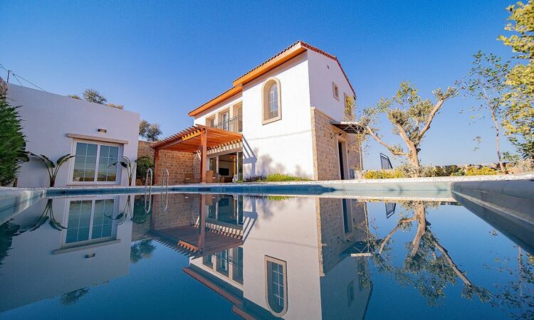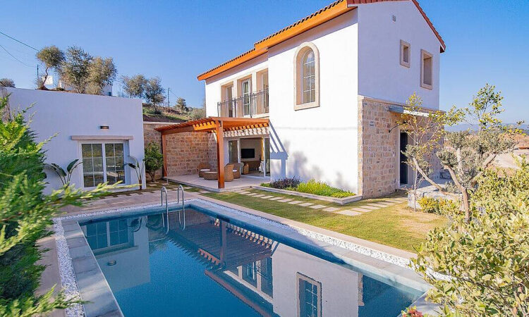 The villas for sale in Muğla, Turkey are conveniently located 5 km from Bodrum-Milas Airport, 6 km from Bodrum Tuzla Bird Sanctuary, 8 km from the shopping center, 10 km from Güllük Marina and Güllük Beach, 17 km from Milas State Hospital, 37 km from Bodrum center, and 38 km from the Mausoleum of Halicarnassus, one of the seven wonders of the world.