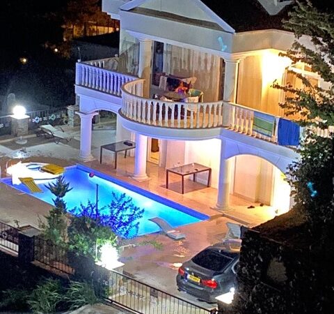 The property includes a private pool, Jacuzzi, BBQ area, and a beautiful private garden, all complemented by breathtaking panoramic views of the sea, mountains, and town. Relax and enjoy these views from the villa’s expansive terrace and balcony, perfect for unwinding in your personal paradise.