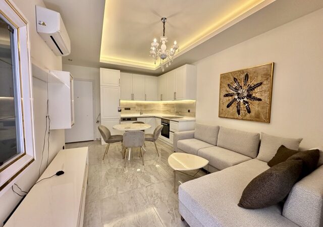 Nestled in the heart of the sought-after Cleopatra area in Alanya, this contemporary 1-bedroom apartment offers a blend of modern living, comfort, and prime location. Situated in a well-equipped residential complex, this home is perfect for those seeking a stylish coastal retreat or an excellent investment opportunity.