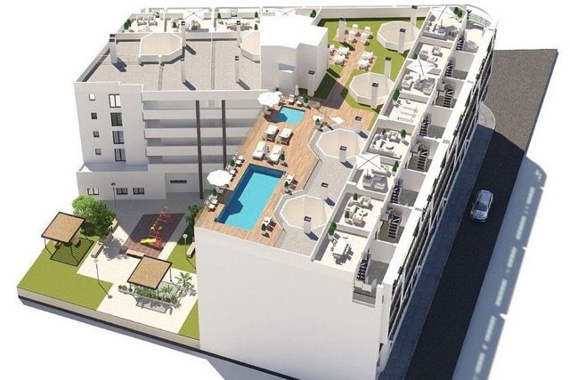 These flats are part of a private, well-maintained complex that includes beautiful gardens, a communal swimming pool, and secure parking. The flats are designed to maximize space and light, with spacious living areas and open-plan kitchens that make the most of the surrounding natural light. Each flat has generous terraces, offering plenty of outdoor space to enjoy the Mediterranean climate.