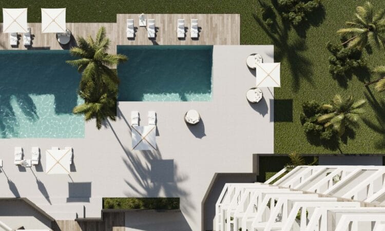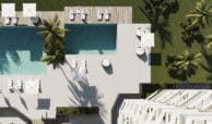 The flats are part of an exclusive complex featuring enclosed parking, lush gardens, and a communal pool for relaxation. Designed with contemporary flair, they boast open-plan kitchens, spacious living areas, and generous terraces that capture ample natural light. Modern comforts include laundry facilities and serene terraces.
