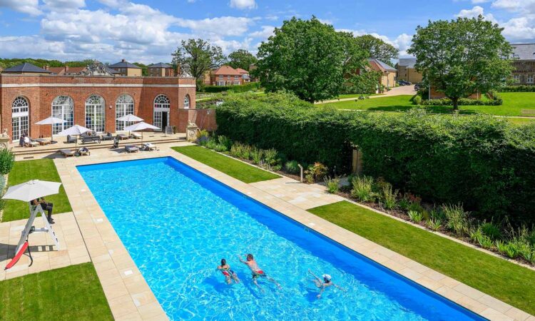 Elegantly spread across three floors, the home features spacious living and dining rooms, a modern kitchen with integrated appliances, and a private rear garden perfect for family gatherings. Residents enjoy exclusive access to a heated outdoor pool, tennis courts, gym, and a private shuttle service to Oakwood Station.