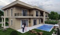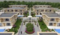 This villa complex consists of 26 stylish villas and features a range of high-end amenities including an indoor pool, fitness center, Turkish bath, sauna, tennis and basketball courts, football field, generator, technical service, indoor garage for 2 cars, and 24/7 security with a camera system.