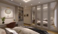 The luxurious villas come equipped with smart home systems, air conditioning, a combi boiler, built-in kitchen sets, underfloor heating, steel doors, elevators, laminate and ceramic flooring, shower cabins, backup water tanks, and PVC joinery for balcony doors and windows, ensuring comfort and convenience.