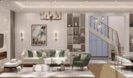 The villas are available in duplex and triplex layouts, offering spacious interiors with separate kitchens, en-suite bathrooms, laundry rooms, balconies, terraces, private gardens, and swimming pools.