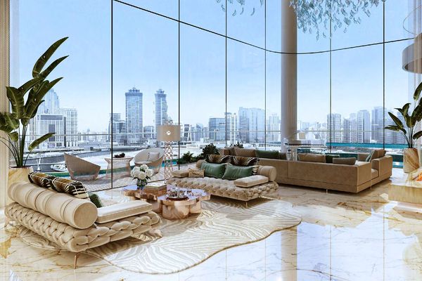 Explore the epitome of luxury living at ‘s exclusive 5-bedroom suite in DAMAC Cavalli Couture. This palatial residence, designed by the renowned fashion brand Roberto Cavalli, boasts a private pool and is nestled along the Dubai Water Canal. A true masterpiece of opulence and sophistication, this ultra-elite project combines jungle and water elements for a unique and lavish ambiance.