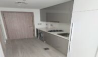 Modern studio apartment with an open-plan living area and fully-equipped kitchen. The space is designed to maximize comfort and functionality, featuring large windows that fill the room with natural light. High-quality finishes and contemporary fittings create a stylish and inviting atmosphere, perfect for singles or couples.