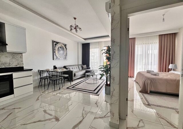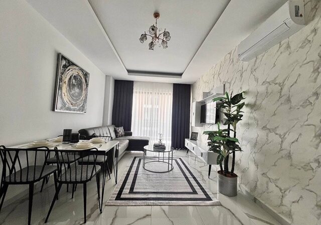 This 1+1 partially furnished apartment in Kestel offers a comfortable and modern living space with sea views. Covering 55 m², the apartment is situated on the 3rd floor of a 5-story building, featuring an American-style kitchen, 1 bathroom, and 1 balcony.
