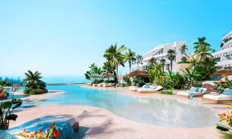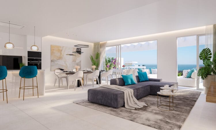 These apartments in Mijas Malaga are ideally located in La Cala de Mijas, surrounded by essential daily amenities and social facilities. They are just 30 km from Malaga Airport and less than 20 km from Marbella and Puerto Banus.