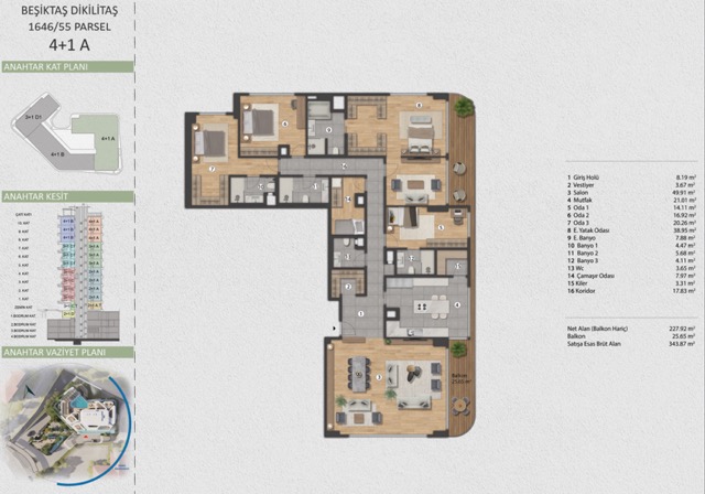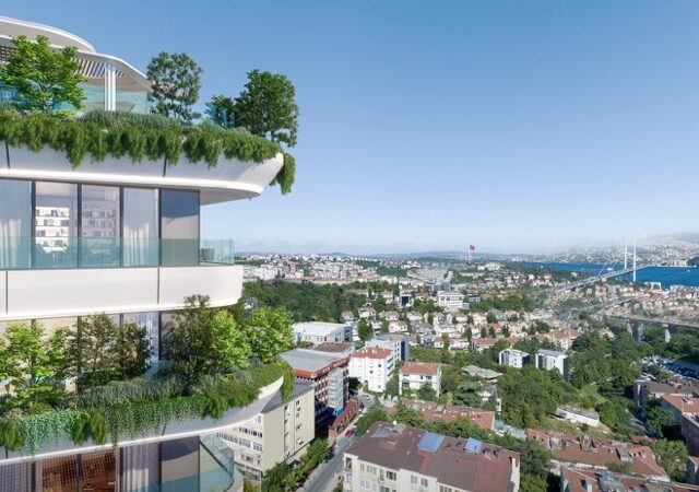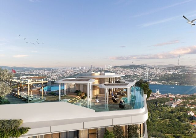 This exclusive project features panoramic Bosphorus views and covers a 2,000 m² land area. It consists of 48 flats spread across 12 floors in a single-block design. On the rooftop, residents can enjoy an outdoor pool and a beautifully landscaped garden. Additional amenities include a Turkish bath, SPA, jacuzzi, sauna, gym, lobby, café, restaurant, cinema, children’s playground, meeting rooms, and indoor parking. The complex is secured with 24/7 security, camera systems, fire escapes, and a lightning rod.