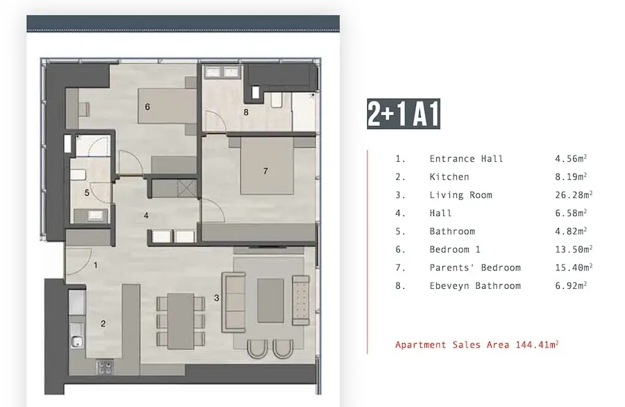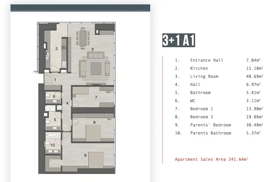 Designed for ultimate comfort, the apartments are equipped with automatic window systems, central heating and cooling, satellite TV, fiber optic internet, Wi-Fi, central hot water systems, kitchen appliances, air conditioning, terraces, and smart home technology, making them an ideal choice for modern city living.