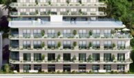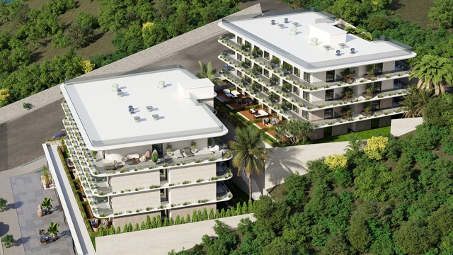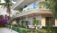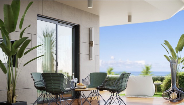 The apartments feature open-plan kitchens, air conditioning, and private balconies or terraces. The complex is equipped with a communal pool, garden, and smart-home system, along with 24/7 security for your peace of mind. Enjoy convenient access to the beach, local bars, and restaurants, all within a short distance.