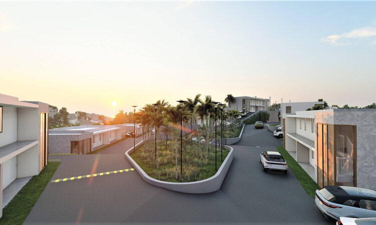 The elegantly designed semi-detached houses feature a living room, an open plan kitchen, three bedrooms, three bathrooms, a balcony, and a terrace.