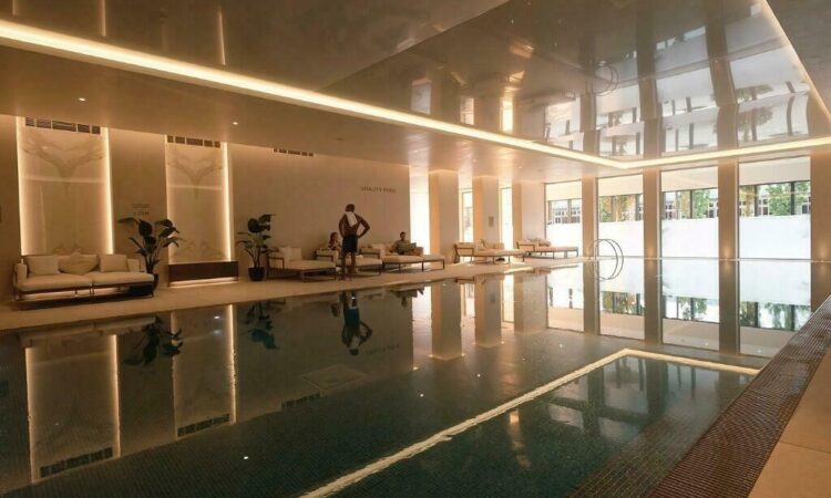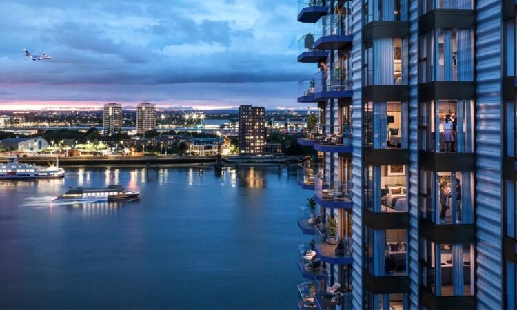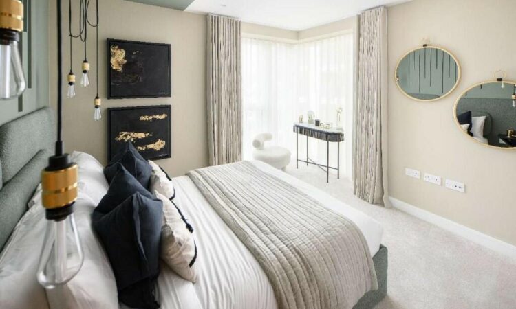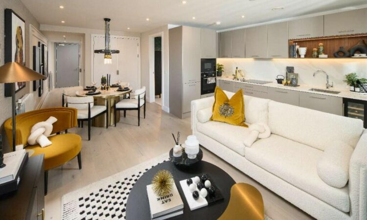 This elegant 841 sq ft (78.1 m²) two-bedroom apartment, priced at £690,000, offers a sophisticated living experience in Woolwich, London. The open-plan living and dining area is perfect for modern living, with a fully equipped kitchen featuring premium appliances and contemporary finishes.