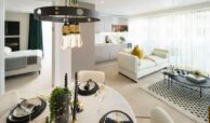 The master bedroom includes a built-in wardrobe and a luxurious en-suite bathroom. The second bedroom is equally well-sized and versatile. A family bathroom with high-quality fittings completes the apartment’s interior.