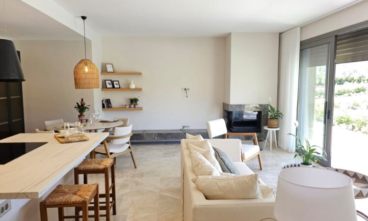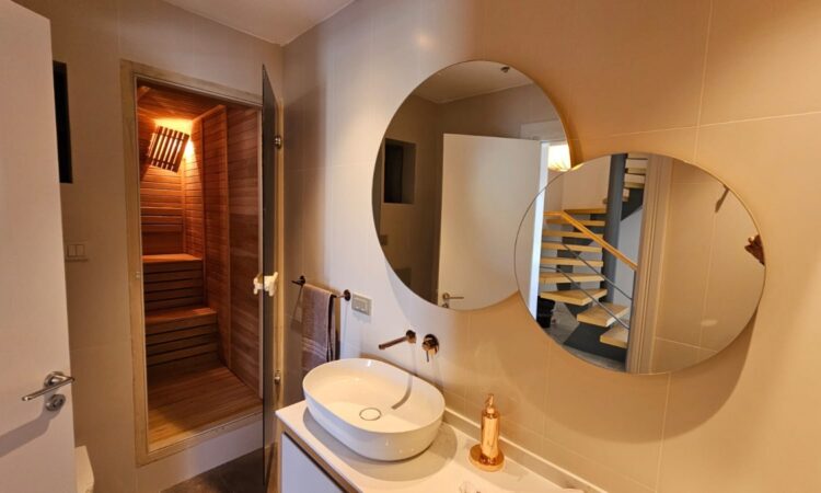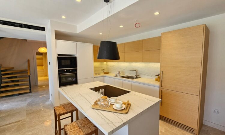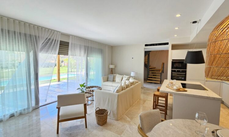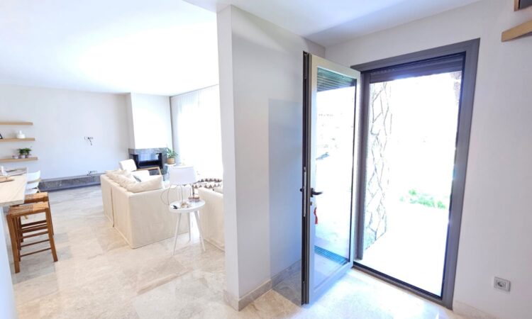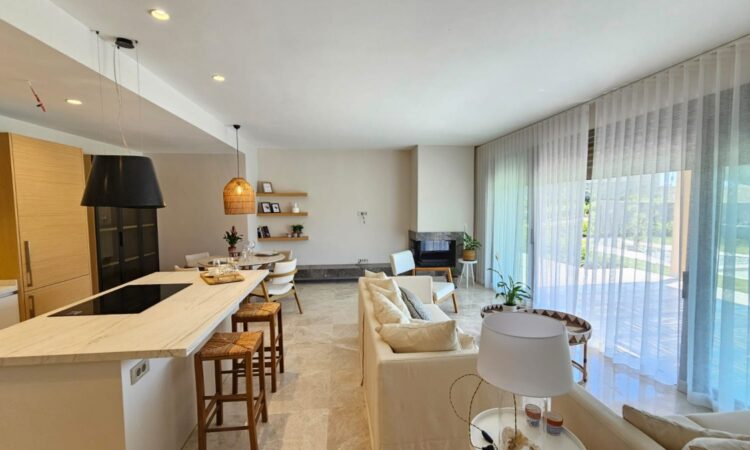 Inside, the villas boast a contemporary design with spacious living areas, an open-plan kitchen, multiple bedrooms, and bathrooms. They are equipped with top-of-the-line finishes, including underfloor heating, a VRV air conditioning system, and high-quality materials that guarantee comfort and style throughout the year.