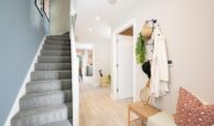 Outside, enjoy a private south-facing garden, driveway for two cars, and bespoke cycle storage. The home is equipped with underfloor heating on the ground floor, energy-efficient air-source heat pump heating, and high-quality flooring throughout.