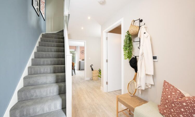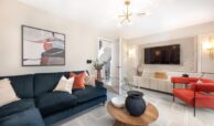 This modern detached home offers a perfect blend of contemporary design and functional space across three floors. The ground floor features an open-plan kitchen/dining area with premium integrated appliances and a stylish study, ideal for a home office or kids’ playroom. The first floor boasts a spacious living room and a luxurious principal bedroom with an en-suite and built-in wardrobe. The top floor includes three well-proportioned bedrooms and a family bathroom.