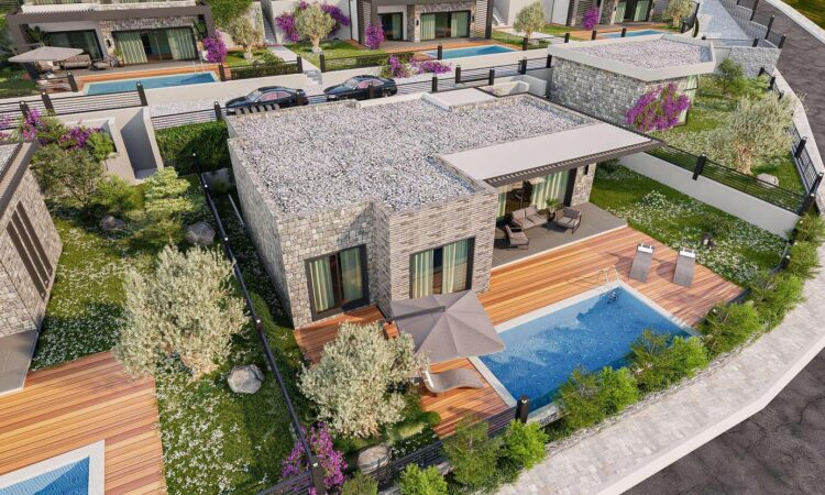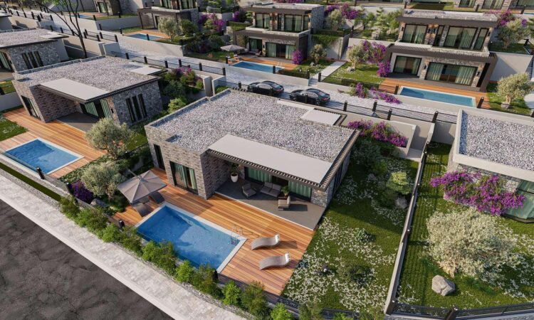 These villas for sale in Bodrum are ideally situated close to all necessary amenities such as cafes, restaurants, markets, pharmacies, banks, and hospitals. The properties are located just 1 km from Yalıkavak Palmarina, 18 km from Bodrum city center, and 19 km from Bodrum Castle and the Mausoleum at Halicarnassus. The villas are also conveniently located 50 km from Bodrum-Milas Airport and 16 km from Bodrum State Hospital.