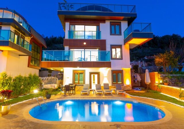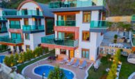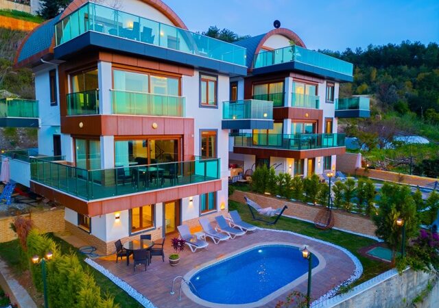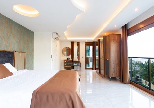 Located just 2 km from the sea and 1 km from Alanya city center, the villa offers a peaceful retreat with easy access to local amenities. The complex provides a range of shared facilities, including a common pool, children’s pool, spa, fitness center, and sports courts.