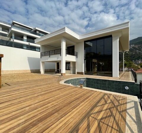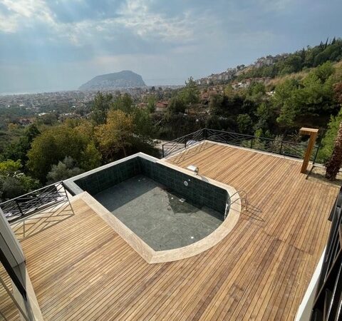 This extraordinary villa in Tepe, Alanya, offers 800 m² of exceptional living space on a 1000 m² plot, making it the perfect blend of luxury and comfort. With 6 spacious bedrooms and 4 bathrooms across three floors, this property is designed for both relaxation and entertainment. The villa features a modern American-style kitchen, two expansive living areas, and a private dressing room.