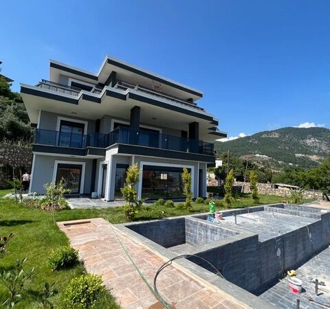This stunning villa in Tepe, Alanya, offers 510 m² of extraordinary living space, set on a 1001 m² plot. Completed in 2023, the villa spans three floors with 5 spacious bedrooms, 4 bathrooms, and two expansive living rooms. The property is designed with modern elegance, featuring an American-style kitchen, a dressing room, and balconies that allow you to enjoy breathtaking sea, mountain, and town views.