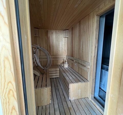 Inside, the villa is equipped with underfloor heating, air conditioning, and a fireplace for ultimate comfort. It also includes a private pool, Jacuzzi, sauna, BBQ area, and a private garden, providing everything needed for a lavish lifestyle. The property is also fitted with energy-saving windows for enhanced efficiency.