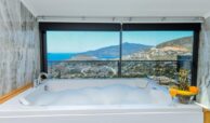 This detached house is just 2.5 km from the beach and 115 km from Dalaman Airport. Situated on a 400 m² plot, the property boasts a completed landscape, unobstructed sea views, and a spacious swimming pool. Inside, the house offers a 250 m² net usage area with a spacious living area and an open-plan kitchen on the ground floor. There are four bedrooms, two of which feature jacuzzis, with all bedrooms offering stunning views of the Kalkan sea. Each bedroom is also equipped with an en-suite bathroom. Additional amenities include an indoor swimming pool, sauna, Turkish Bath, game room, and a hobby room with billiards and table tennis.