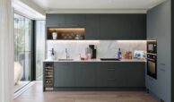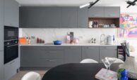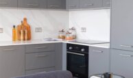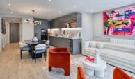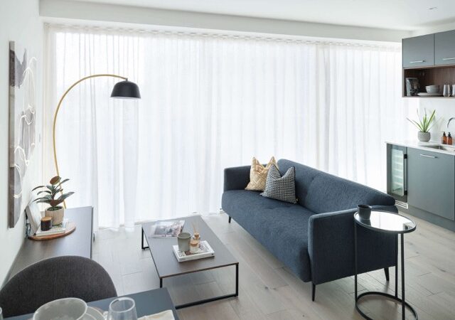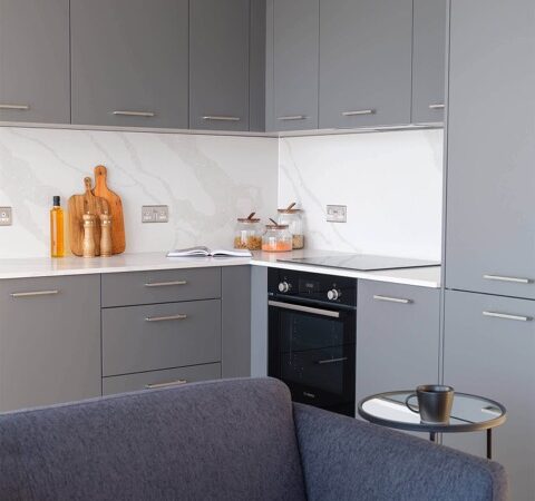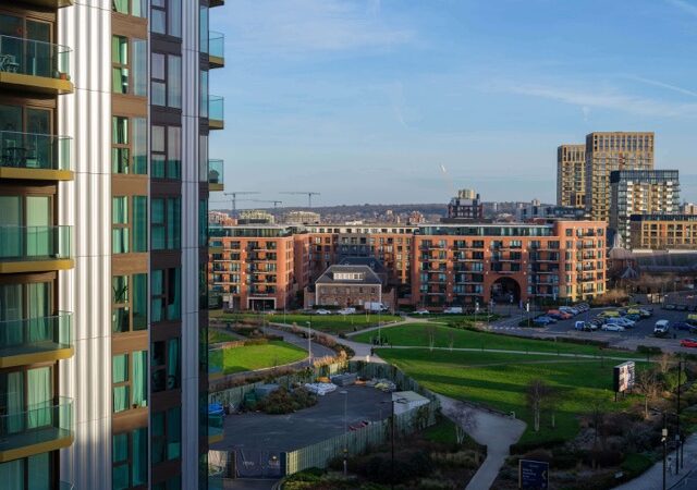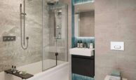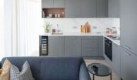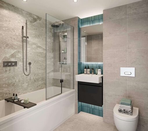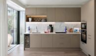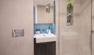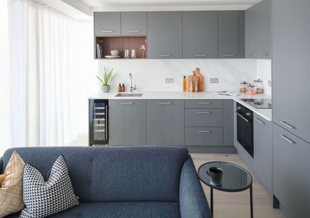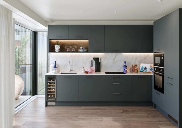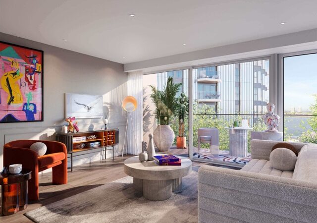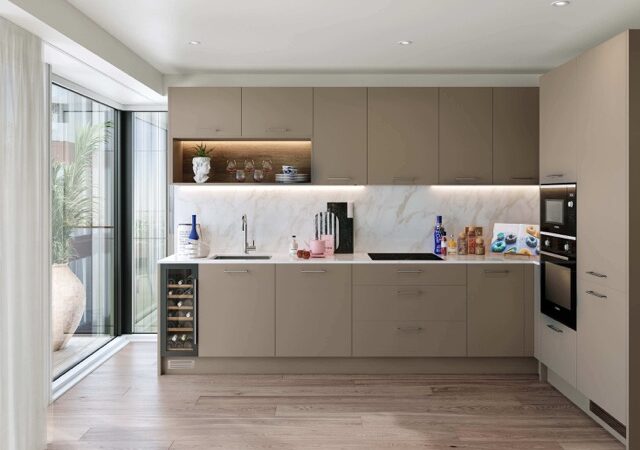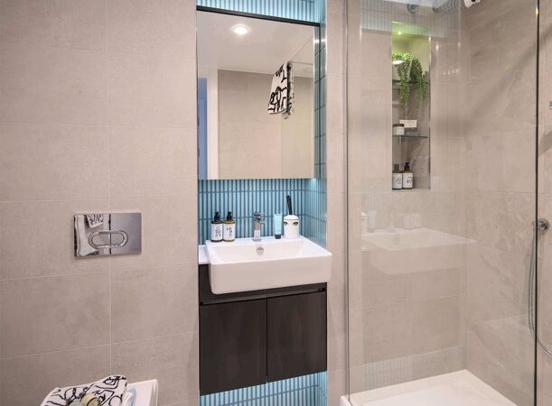 This 548 sq ft (50.9 m²) one-bedroom apartment, priced at £480,000, offers a contemporary living experience in Woolwich, London. The property features a bright open-plan living and dining area, designed to create a welcoming atmosphere. The kitchen is fitted with premium appliances and finished with modern cabinetry, providing a sleek and functional space.