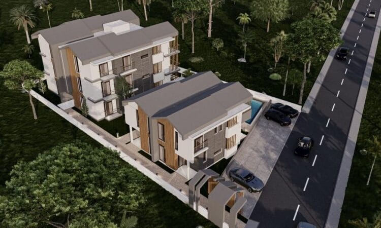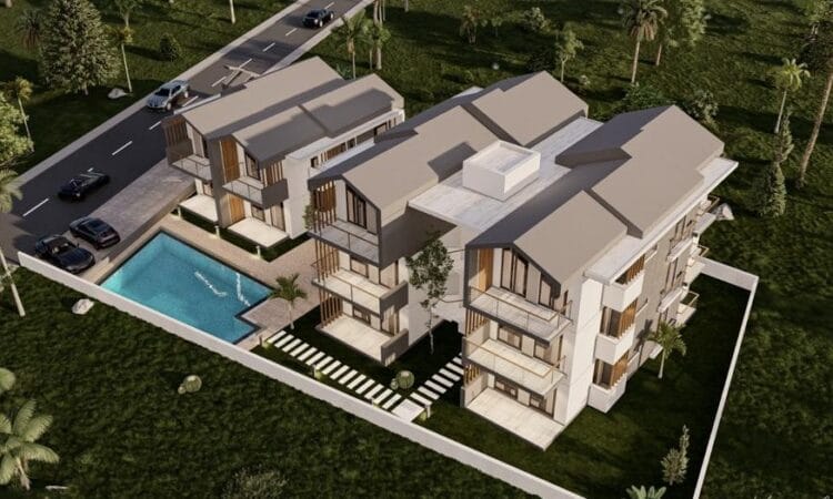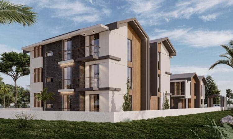 Discover stylish living in the serene area of Döşemealtı, Antalya, with these elegant apartments. Located in the historic Yeşilbayır neighborhood, this complex offers a peaceful setting with olive trees, a swimming pool, and indoor parking, while still being close to essential amenities.