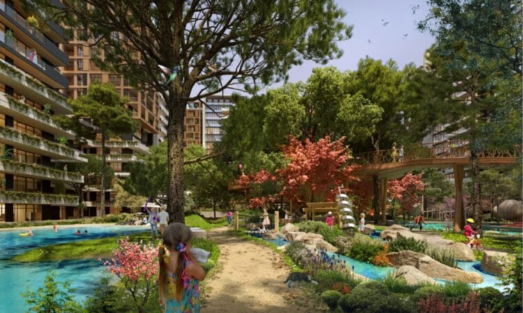 Built on a 31,000 sqm plot, the project features picnic areas, fruit gardens, camping sites, yoga and pilates areas, a kids’ pool with a beach, outdoor and indoor pools, parking areas, a communal garden, walking paths, a Turkish bath, SPA, sauna, reception, basketball court, football field, volleyball court, tennis court, fitness center, security cameras, 24/7 security, lift, and site attendant. The project also includes world-renowned shops, restaurants, and markets.
