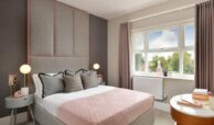 Residents enjoy exclusive access to the Lawn Club facilities, including a swimming pool, gym, and tennis courts, as well as a convenient shuttle service to Oakwood Station, offering a 26-minute commute to King’s Cross.