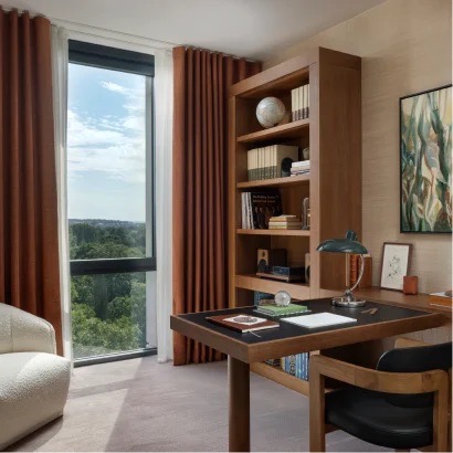 Set within a vibrant neighborhood, the development features a collection of stylish apartments and townhouses, crafted with high-spec interiors and floor-to-ceiling windows that maximize natural light and frame stunning views of the river and green spaces. The architecture pays homage to the area’s industrial past while embracing a sleek, modern aesthetic.