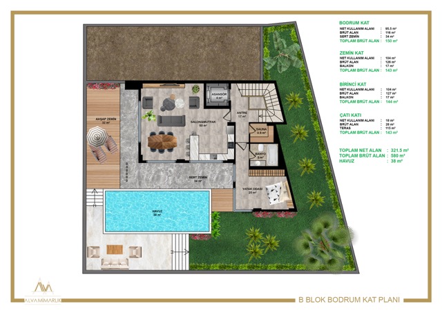 This luxurious 6-bedroom, 4-bathroom villa in Cikcilli offers 306 m² of sophisticated living space across 3 floors, set on a 580 m² plot. The villa features a private pool, jacuzzi, sauna, BBQ area, and expansive terrace with stunning sea, mountain, and town views. Enjoy the modern amenities of underfloor heating, air conditioning, and a fully equipped American kitchen.