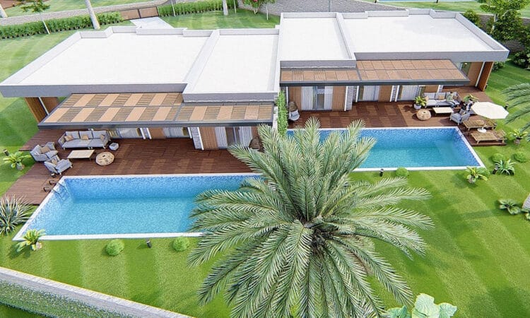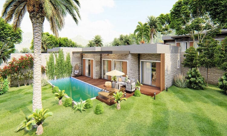 The development consists of 18 homes spread across 17,000 m², offering privacy and open green spaces. Each villa includes a private swimming pool, a detached garden, and a spacious veranda. Security services ensure comfort and safety for residents. These features make the development ideal for buyers seeking luxury villas for sale in Muğla with modern facilities.