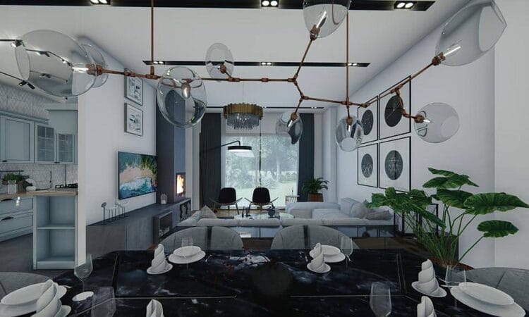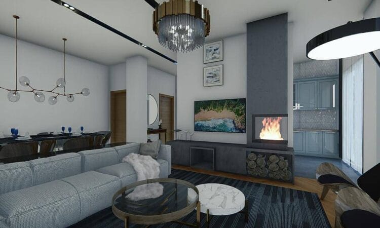 Inside, the villas have been designed with careful attention to detail. Each home includes a bright living room, an open-plan kitchen, three bedrooms, a dressing room, two bathrooms, a balcony, and a terrace. Smart home technology enhances daily living, making these homes ideal for buyers searching for smart home villas in Milas. Large windows frame scenic lake and nature views, giving each villa a peaceful atmosphere.