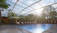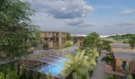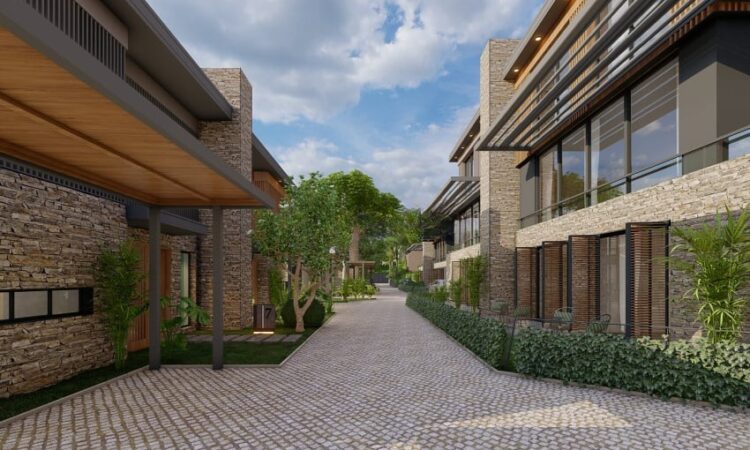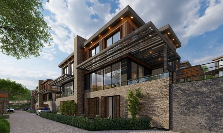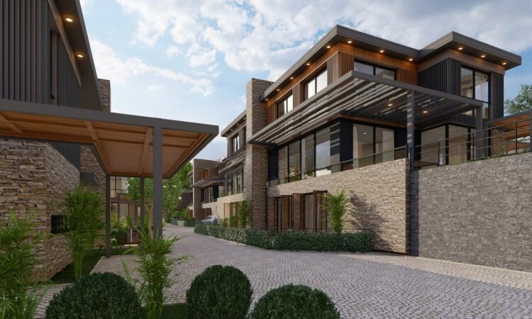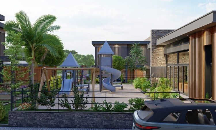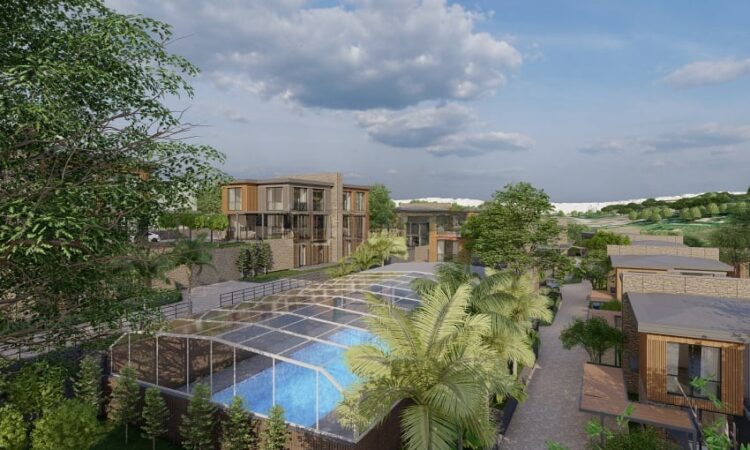 The project spans 12,000 m² and offers amenities including 24/7 security, indoor and outdoor parking, a children’s playground, landscaped areas, detached gardens, terraces, an indoor swimming pool, and communal spaces.